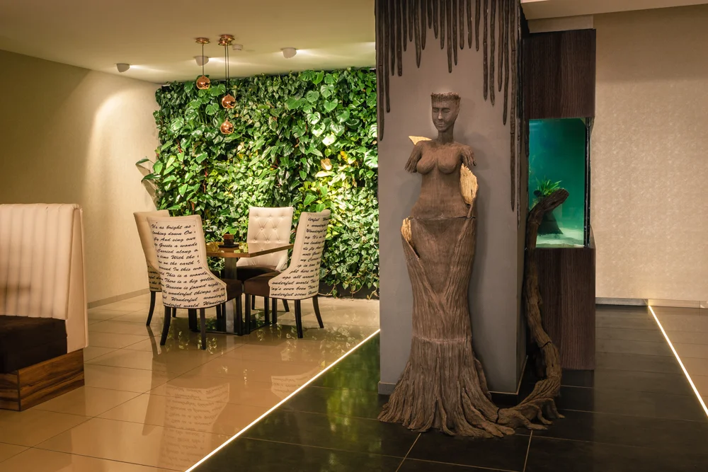 Oferuję Państwu kompleksową usługę w ramach której mogę uatrakcyjnić Państwa restauracje w takie elementy jak akwarium, naczynia użytkowe, rzeźby, drzewka bonsai. Dzięki temu maja Państwo spójne estetycznie wnętrze, zaprojektowane specjalnie dla Państwa.